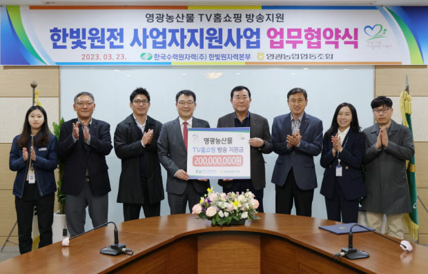한빛원자력본부는 23일 영광농업협동조합과 지역경제 협력·활성화를 위한 ‘영광농산물 TV홈쇼핑 방송’ 사업 지원협약을 체결했다. 한빛원전 제공