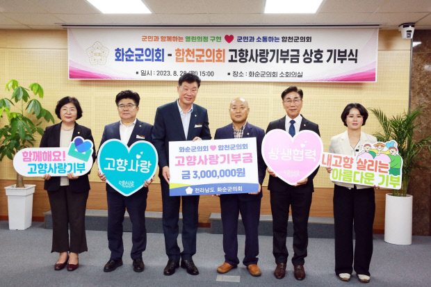 화순군의회 하성동 의장, 김석봉 부의장, 조명순 의회운영위원장, 정연지 총무위원장과 합천군의회 조삼술 의장, 성종태 부의장 등이 참석했으며 300만원씩 지역에 상호 기부하기로 했다.