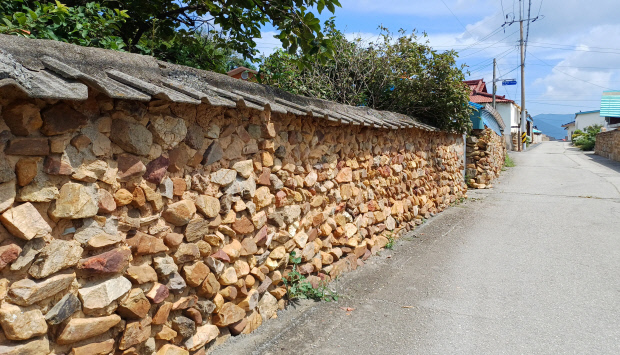 마을에 돌담이 즐비하다. 최근에 다시 쌓은 것도 있지만, 옛 모습 그대로 정겨운 돌담이 많다. 보행보조기에 의지한 어르신이 돌담을 따라 지난다. 시멘트 담장에 그려진 벽화도 흥미롭다. 고샅에 만호비 4기가 서 있다. 1800년대 수군만호를 지낸 4명의 공덕을 기리는 영세불망비(永世不忘碑)다. 마을입구 도로변에 있던 것을 몇 해 전에 옮겼다.