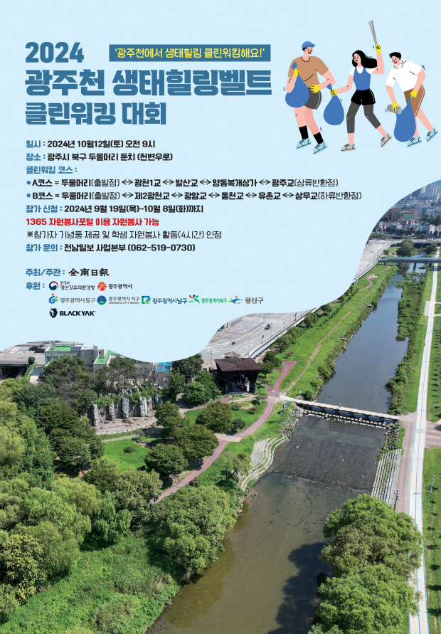 전남일보가 ‘국가하천’ 광주천 일대에서 ‘2024 광주천 생태힐링벨트 클린워킹 대회 ’를 개최합니다.