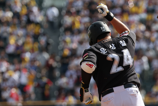 4회말 1사 후 신민재가 우전 안타를 때린 뒤 2루를 훔쳤다. 후속타자 오스틴 딘이 좌익수 방면 안타를 쳐 신민재를 홈으로 불렀다.